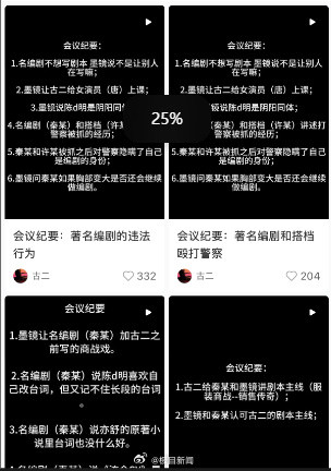极目新闻记者注意到,31日上午8点,IP地址显示在新加坡的古二开始在小红书发布多段王家卫、秦雯与自己的聊天对话,7段总时长为一个多小时的对话均以“会议纪要”为标题,内容除佐证《繁花》中大量重头戏份为古二所写之外,还包括王家卫提到“唐嫣很装”,秦雯透露《流金岁月》中刘诗诗与倪妮争台词,秦雯称陈道明记不住大段台词,王家卫认为游本昌“不是省油的灯”等秘辛。